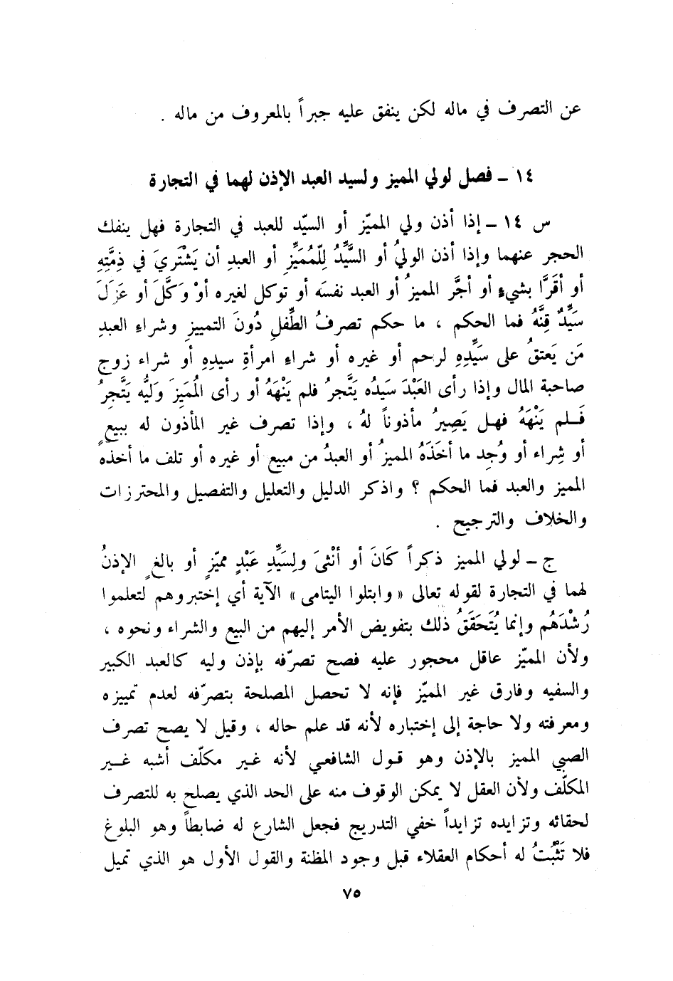 فصل لولي المميز ولسيد العبد الإذن لهما في التجارة