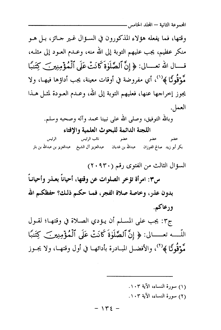 (¬1) سورة النساء الآية 103
