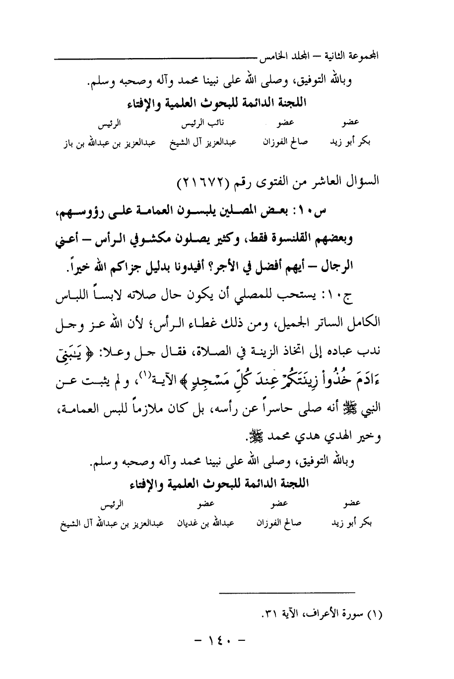 س 10: بعض المصلين يلبسون العمامة على رؤوسهم، وبعضهم القلنسوة فقط، وكثير يصلون مكشوفي الرأس- أعني الرجال- أيهم أفضل في الأجر؟ أفيدونا بدليل جزاكم الله خيرا.