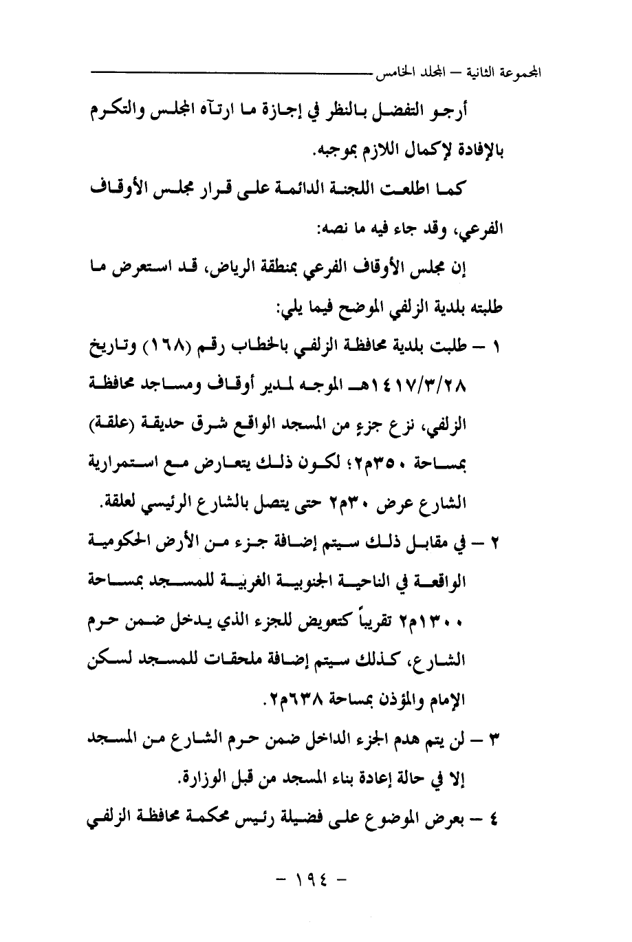 كما اطلعت اللجنة الدائمة على قرار مجلس الأوقاف الفرعي، وقد جاء فيه ما نصه:
