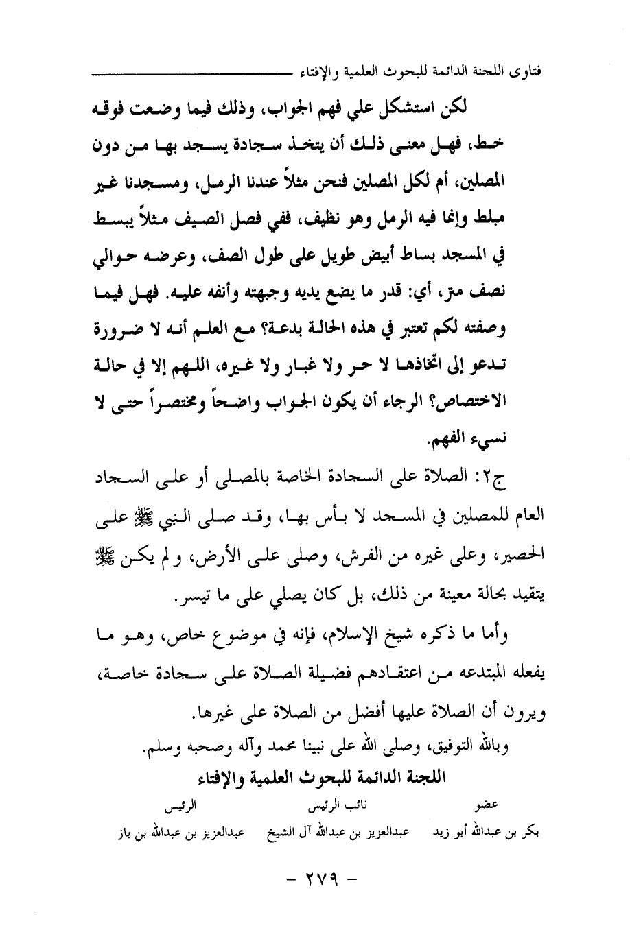 ج 2: الصلاة على السجادة الخاصة بالمصلى أو على السجاد العام للمصلين في المسجد لا بأس بها، وقد صلى النبي صلى الله عليه وسلم على الحصير، وعلى غيره من الفرش، وصلى على الأرض، ولم يكن صلى الله عليه وسلم يتقيد بحالة معينة من ذلك، بل كان يصلي على ما تيسر.