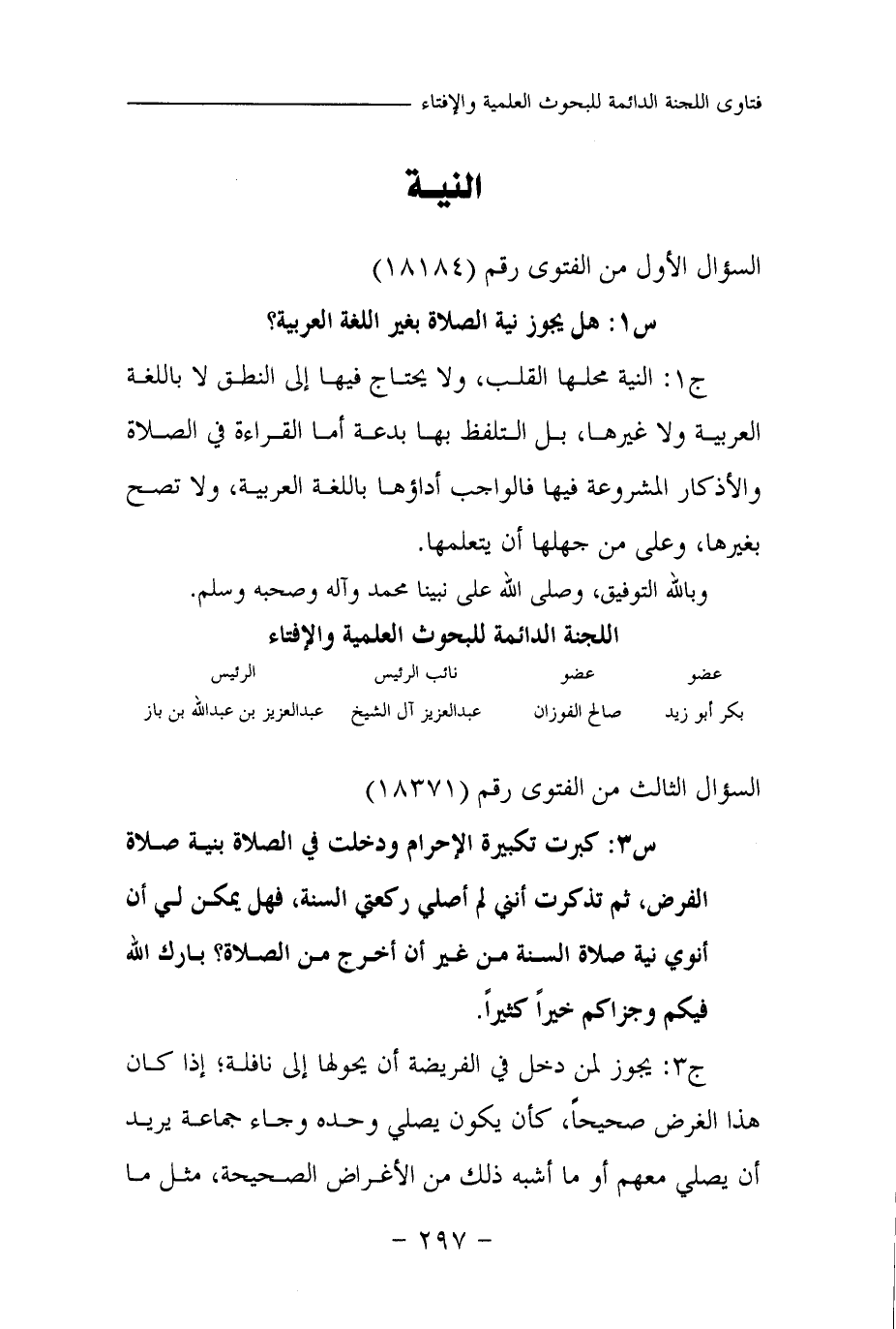 س 1: هل يجوز نية الصلاة بغير اللغة العربية؟