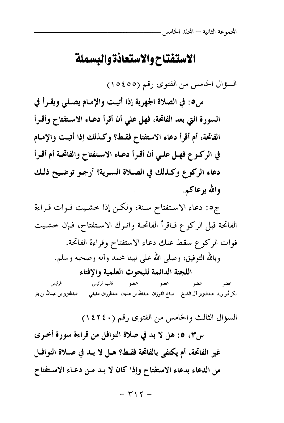 س 3، 5: هل لا بد في صلاة النوافل من قراءة سورة أخرى غير الفاتحة، أم يكتفى بالفاتحة فقط؟ هل لا بد في صلاة النوافل من الدعاء بدعاء الاستفتاح وإذا كان لا بد من دعاء الاستفتاح