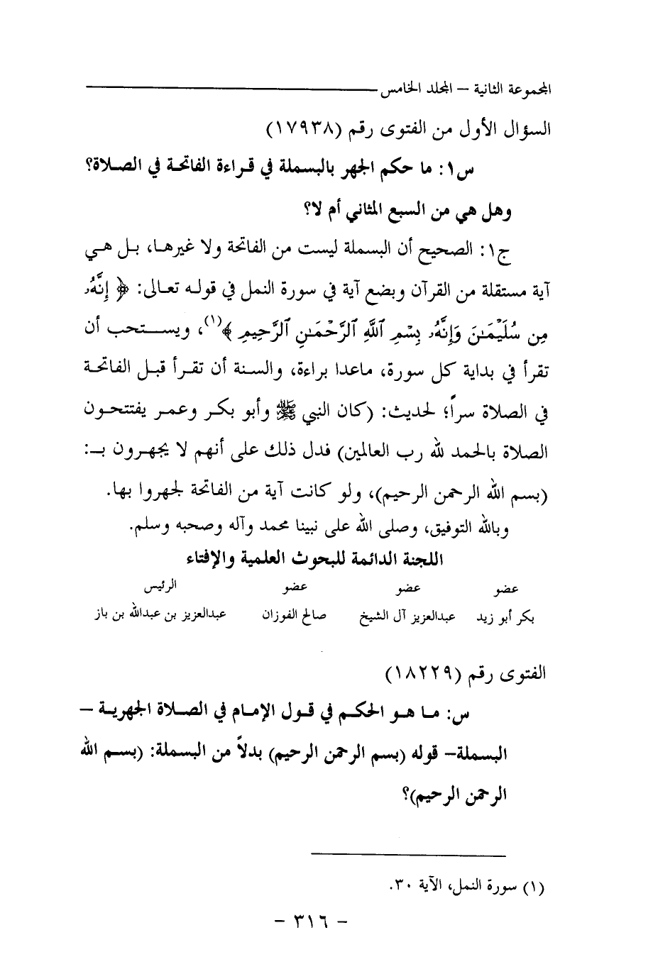 س 1: ما حكم الجهر بالبسملة في قراءة الفاتحة في الصلاة؟