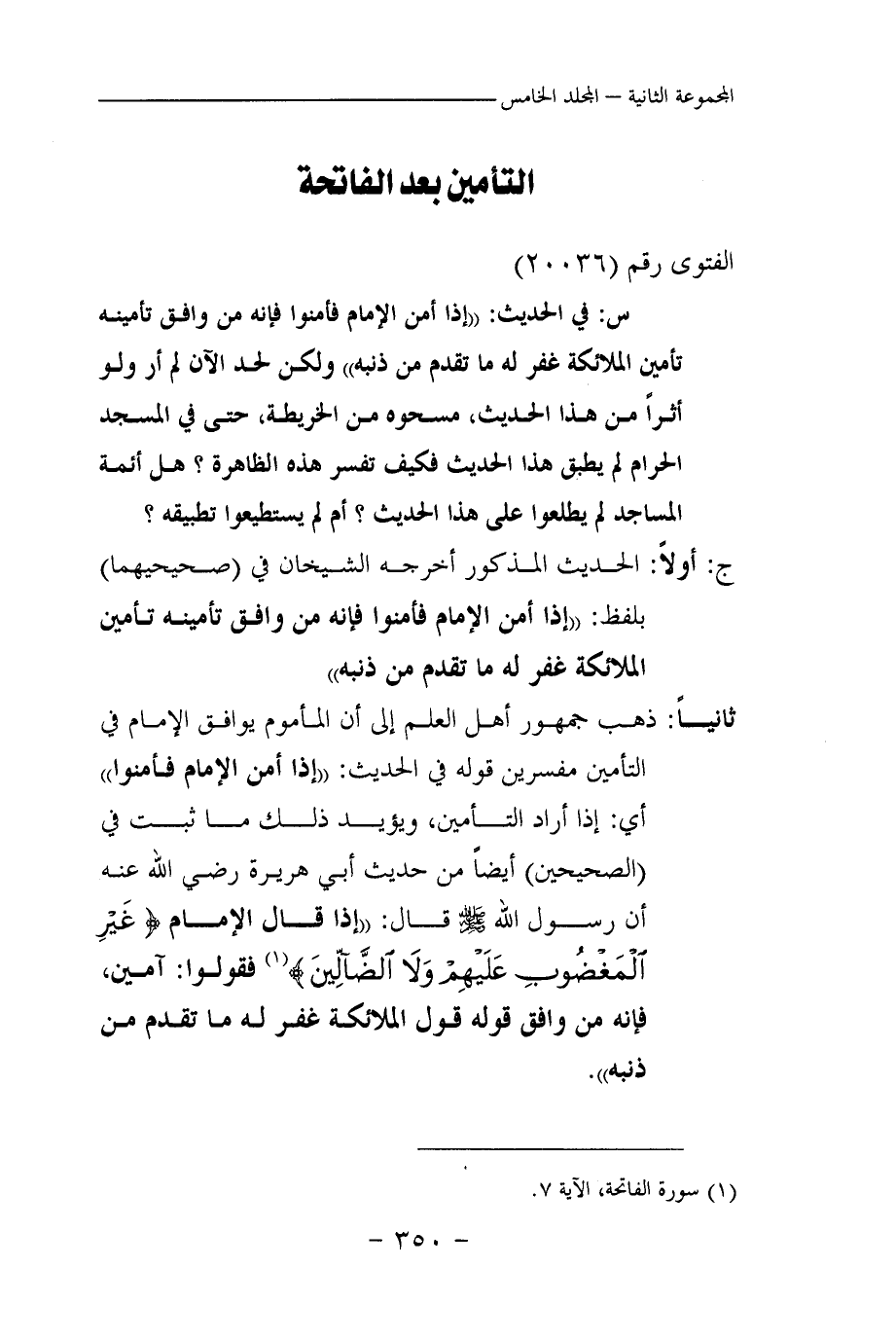 س: في الحديث: «إذا أمن الإمام فأمنوا فإنه من وافق تأمينه تأمين الملائكة غفر له ما تقدم من ذنبه» ولكن لحد الآن لم أر ولو أثرا من هذا الحديث، مسحوه من الخريطة، حتى في المسجد الحرام لم يطبق هذا الحديث فكيف تفسر هذه الظاهرة؟ هل أئمة المساجد لم يطلعوا على هذا الحديث؟ أم لم يستطيعوا تطبيقه؟