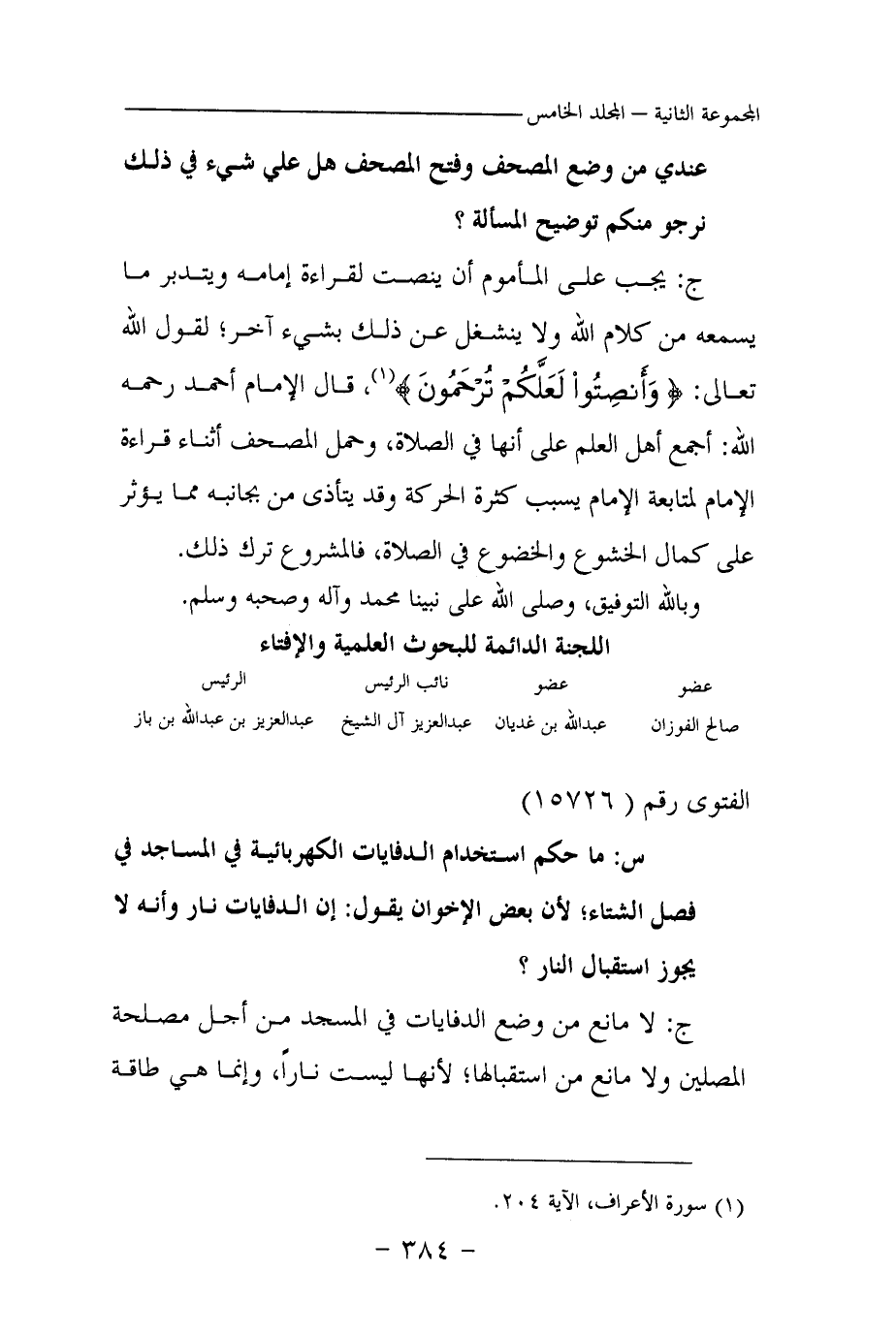 صالح الفوزان ... عبد الله بن غديان ... عبد العزيز آل الشيخ ... عبد العزيز بن عبد الله بن باز