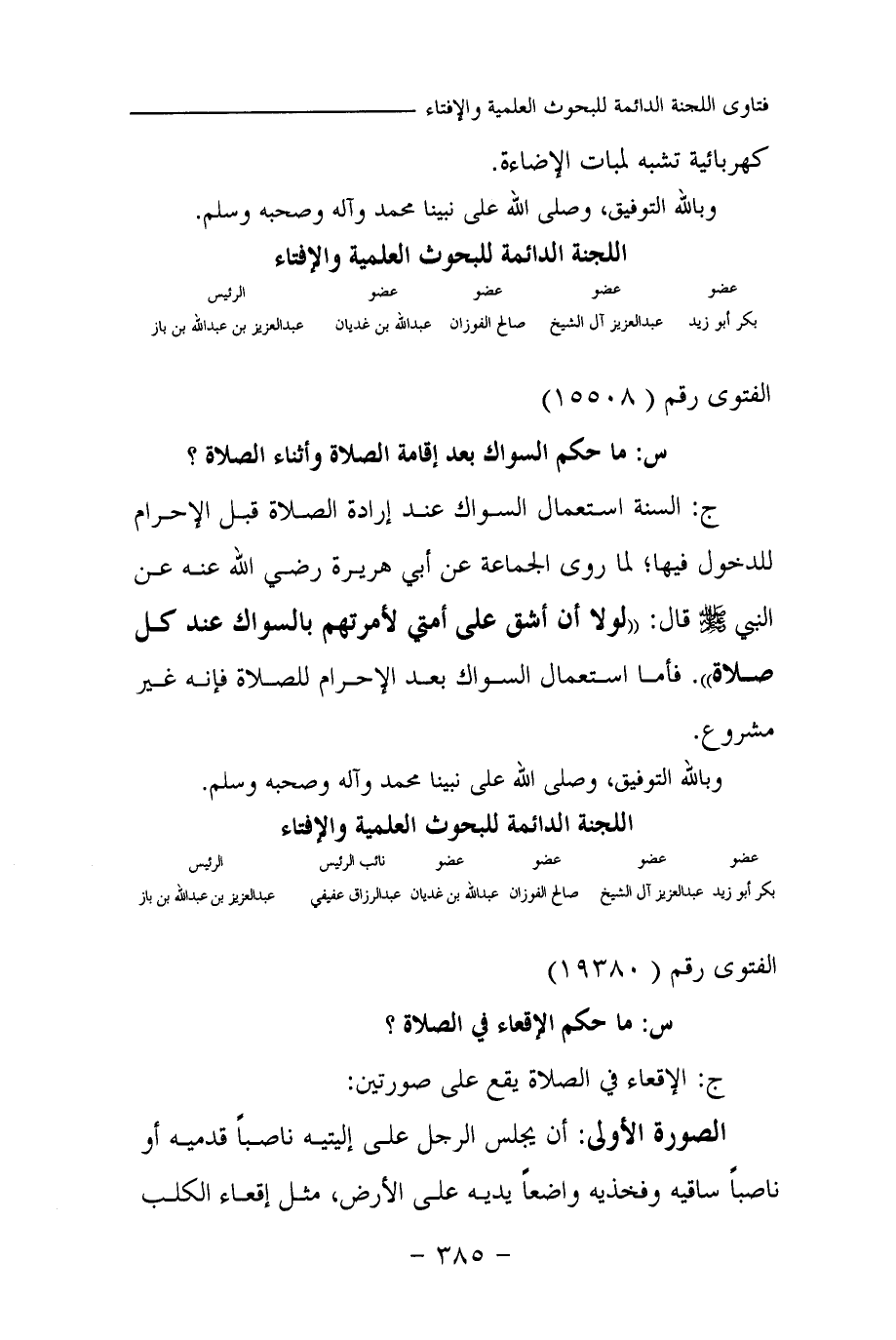 بكر أبو زيد ... عبد العزيز آل الشيخ ... صالح الفوزان ... عبد الله بن غديان ... عبد الرزاق عفيفي ... عبد العزيز بن عبد الله بن باز