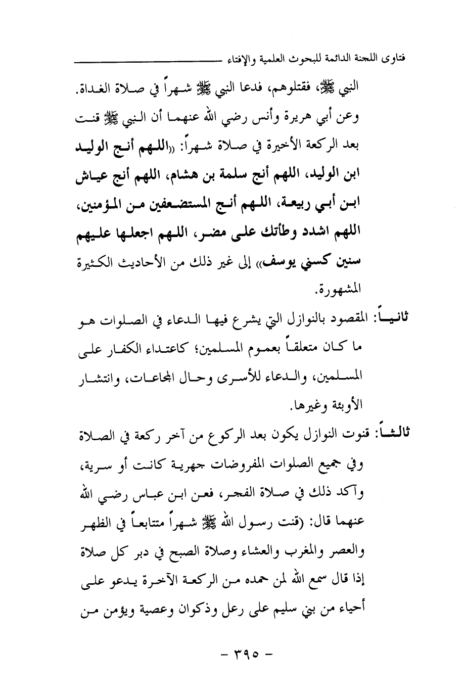 ثانيا: المقصود بالنوازل التي يشرع فيها الدعاء في الصلوات هو ما كان متعلقا بعموم المسلمين، كاعتداء الكفار على المسلمين، والدعاء للأسرى وحال المجاعات، وانتشار الأوبئة وغيرها.