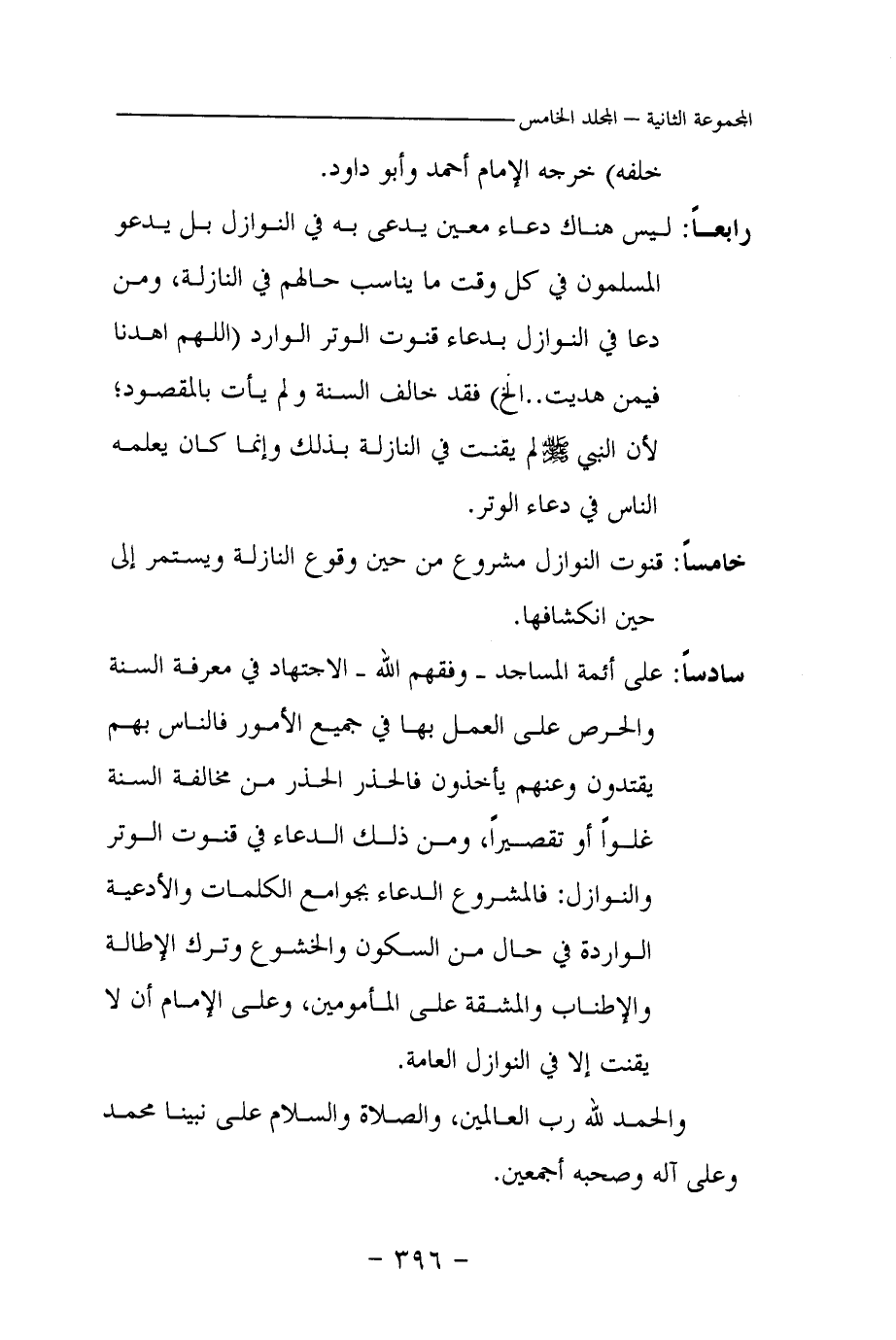 خامسا: قنوت النوازل مشروع من حين وقوع النازلة ويستمر إلى حين انكشافها.