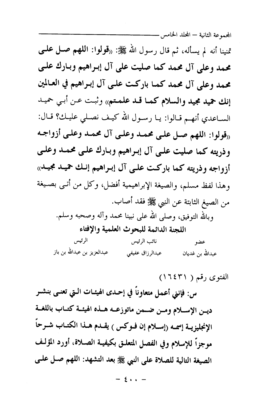 س: فإنني أعمل متعاونا في إحدى الهيئات التي تعنى بنشر دين الإسلام ومن ضمن ما توزعه هذه الهيئة كتاب باللغة الإنجليزية اسمه (إسلام إن فوكس) يقدم هذا الكتاب شرحا موجزا للإسلام وفي الفصل المتعلق بكيفية الصلاة، أورد المؤلف الصيغة التالية للصلاة على النبي صلى الله عليه وسلم بعد التشهد: اللهم صل على