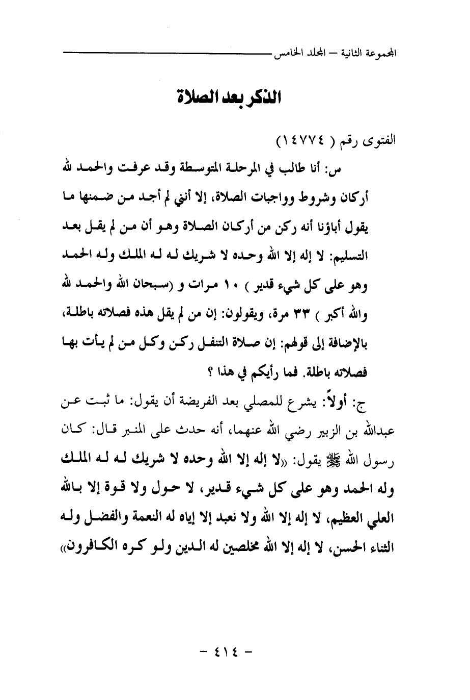 ج: أولا: يشرع للمصلي بعد الفريضة أن يقول: ما ثبت عن عبد الله بن الزبير رضي الله عنهما، أنه حدث على المنبر قال: «كان رسول الله صلى الله عليه وسلم يقول: لا إله إلا الله وحده لا شريك له له الملك وله الحمد وهو على كل شيء قدير، لا حول ولا قوة إلا بالله العلي العظيم، لا إله إلا الله ولا نعبد إلا إياه له النعمة والفضل وله الثناء الحسن، لا إله إلا الله مخلصين له الدين ولو كره الكافرون