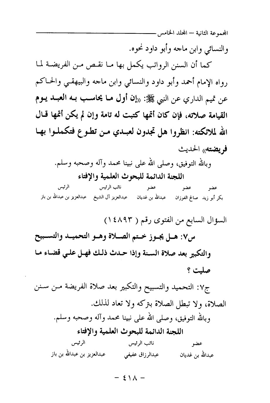 بكر أبو زيد ... صالح الفوزان ... عبد الله بن غديان ... عبد العزيز آل الشيخ ... عبد العزيز بن عبد الله بن باز