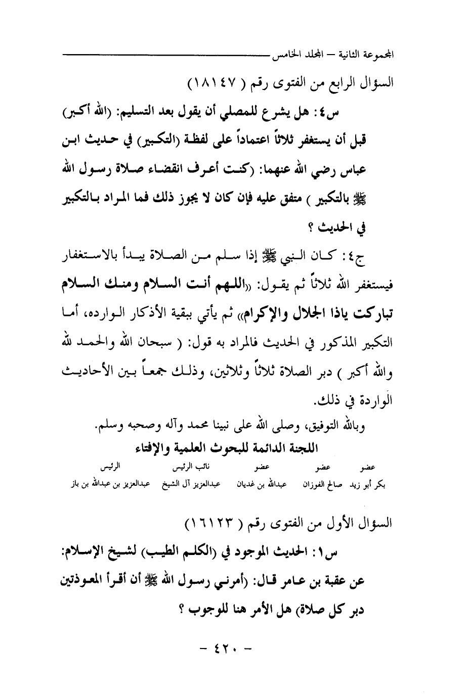 بكر أبو زيد ... صالح الفوزان ... عبد الله بن غديان ... عبد العزيز آل الشيخ ... عبد العزيز بن عبد الله بن باز