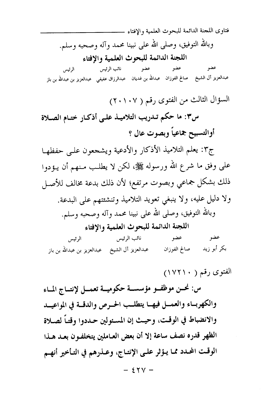 عبد العزيز آل الشيخ ... صالح الفوزان ... عبد الله بن غديان ... عبد الرزاق عفيفي ... عبد العزيز بن عبد الله بن باز