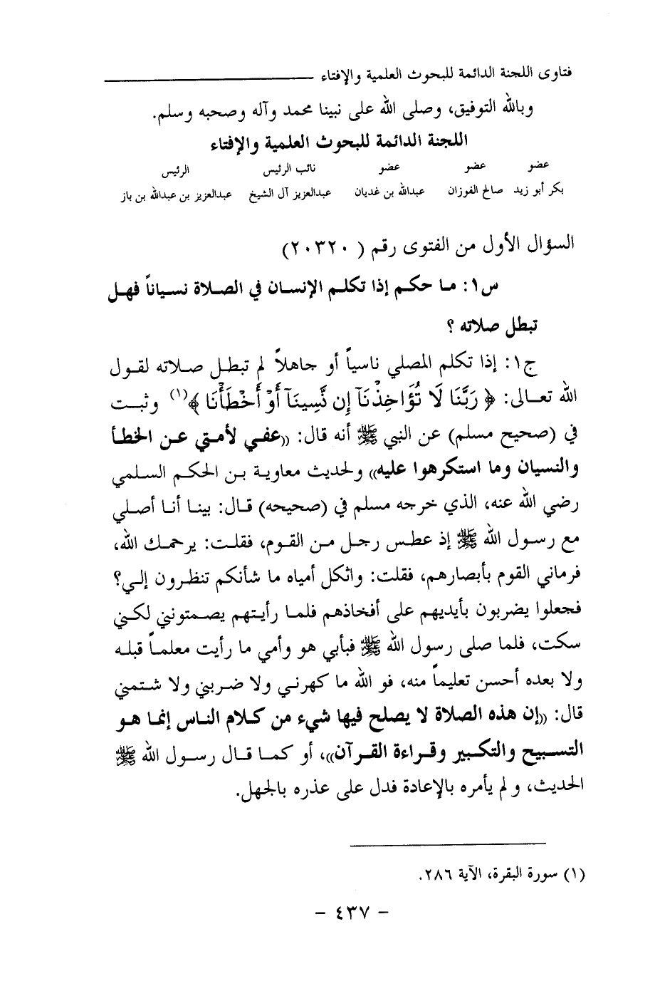 س 1: ما حكم إذا تكلم الإنسان في الصلاة نسيانا فهل تبطل صلاته؟