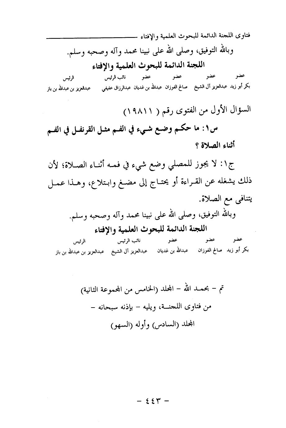 من فتاوى اللجنة، ويليه - بإذنه سبحانه - المجلد (السادس)