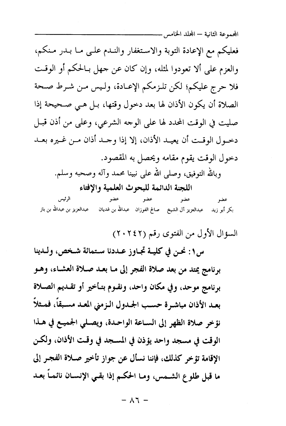 بكر أبو زيد ... عبد العزيز آل الشيخ ... صالح الفوزان ... عبد الله بن غديان ... عبد العزيز بن عبد الله بن باز