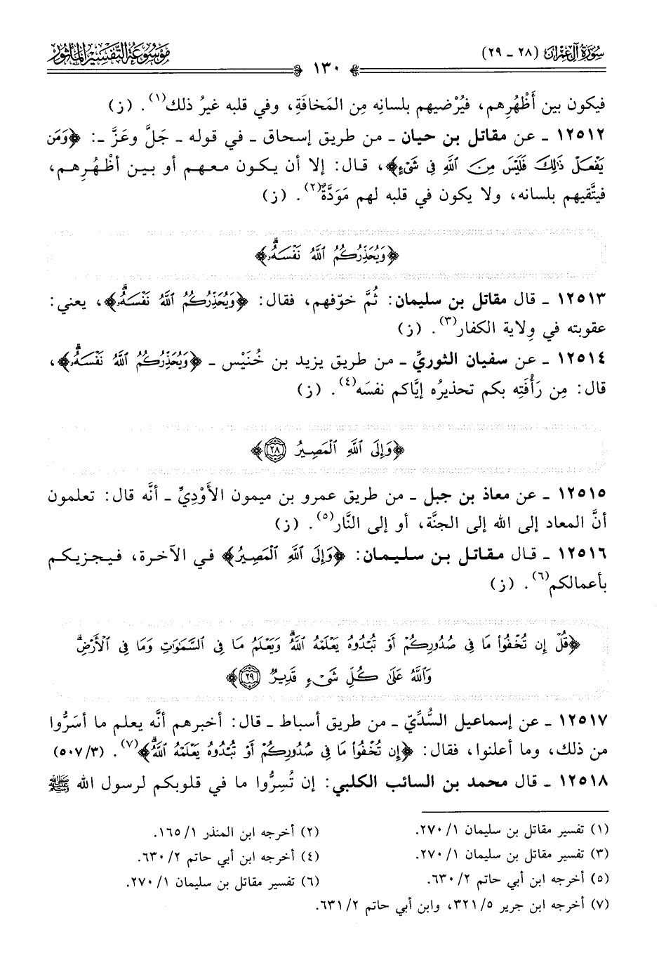 ١٢٥١٤ - عن سفيان الثوريِّ -من طريق يزيد بن خُنَيْس- {ويحذّركم الله نفسه}، قال: مِن رَأْفَتِه بكم تحذيرُه إيّاكم نفسَه (¬٤). (ز)