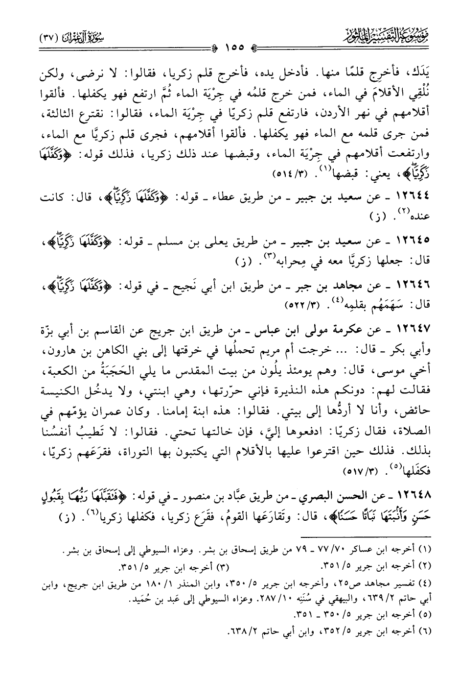 ١٢٦٤٦ - عن مجاهد بن جبر -من طريق ابن أبي نَجيح- في قوله: {وكفلها زكريا}، قال: سَهَمَهُم بقلمِه (¬٤). (٣/ ٥٢٢)
