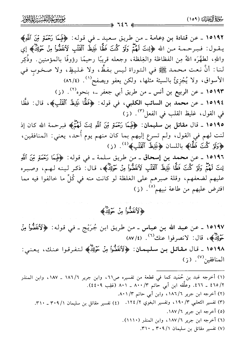 ١٥١٩٨ - قال مقاتل بن سليمان: {لانفضوا من حولك} لتفرقوا عنك، يعني: المنافقين (¬٧). (ز)