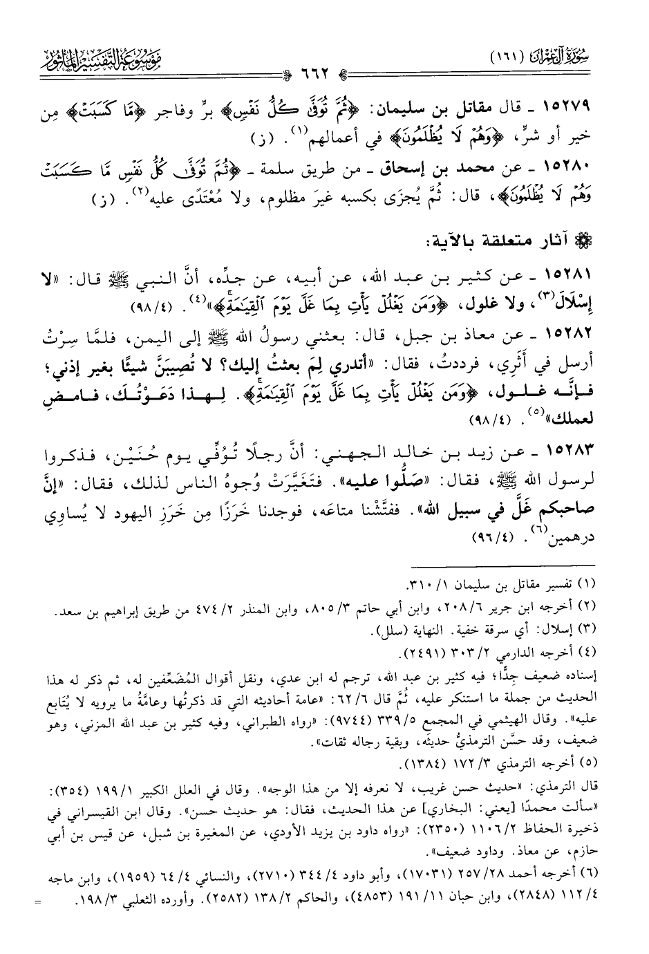 ١٥٢٧٩ - قال مقاتل بن سليمان: {ثم توفى كل نفس} برٍّ وفاجر {ما كسبت} مِن خير أو شرٍّ، {وهم لا يظلمون} في أعمالهم (¬١). (ز)