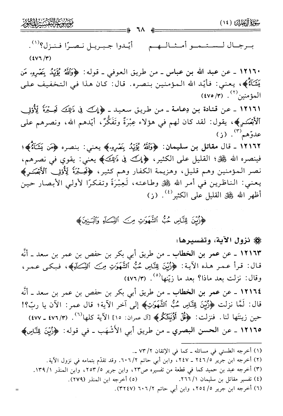 ١٢١٦٣ - عن عمر بن الخطاب -من طريق أبي بكر بن حفص بن عمر بن سعد- أنّه قال: قرأ عمر هذه الآية: {زين للناس حب الشهوات من النساء}، فبكى عمر، وقال: نزلت بعد ماذا؟ بعد ما زيّنها (¬٥). (٣/ ٤٧٦)