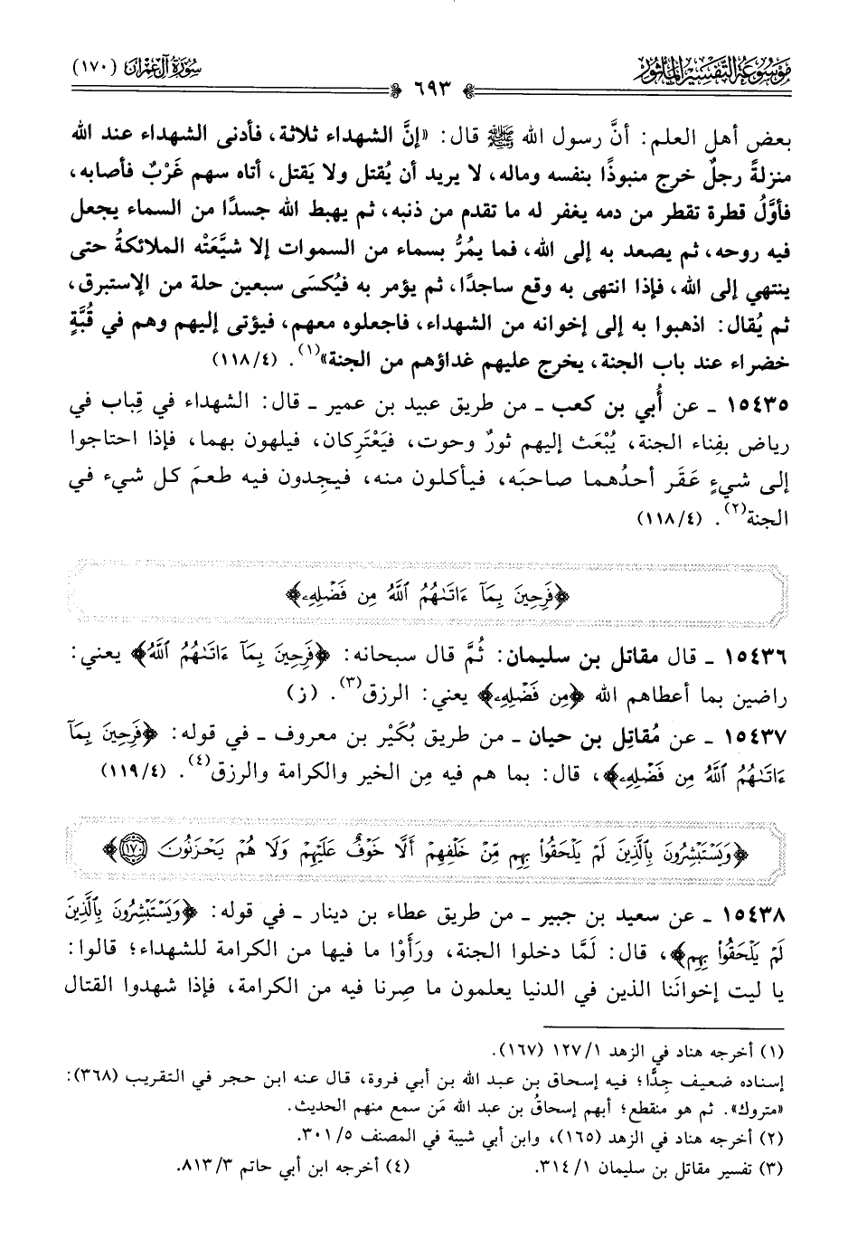 ١٥٤٣٨ - عن سعيد بن جبير -من طريق عطاء بن دينار- في قوله: {ويستبشرون بالذين لم يلحقوا بهم}، قال: لَمّا دخلوا الجنة، ورَأَوْا ما فيها من الكرامة للشهداء؛ قالوا: يا ليت إخوانَنا الذين في الدنيا يعلمون ما صِرنا فيه من الكرامة، فإذا شهدوا القتال