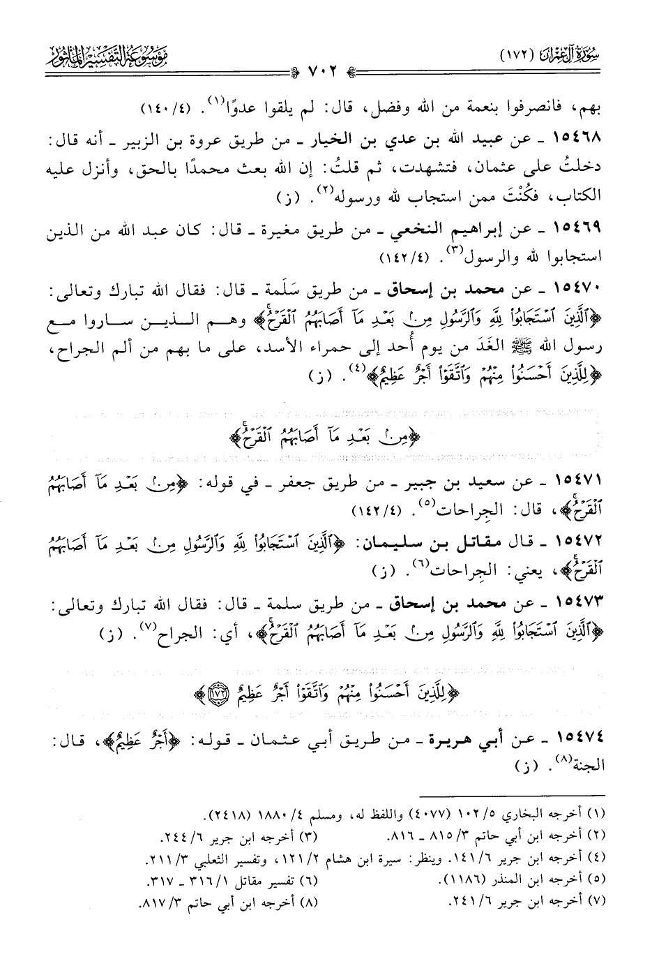 ١٥٤٧١ - عن سعيد بن جبير -من طريق جعفر- في قوله: {من بعد ما أصابهم القرح}، قال: الجِراحات (¬٥). (٤/ ١٤٢)