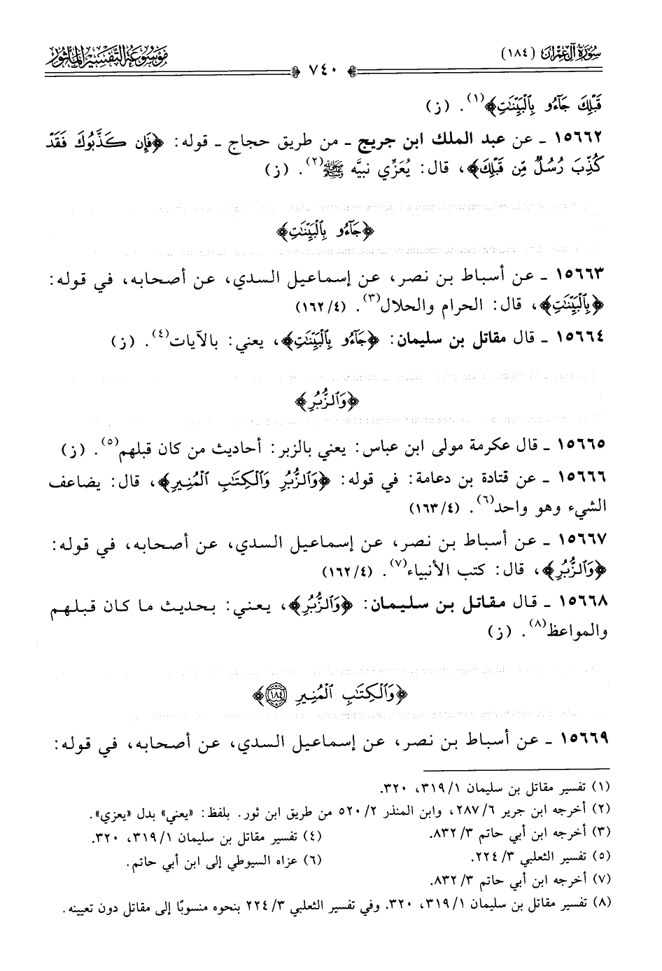 ١٥٦٦٦ - عن قتادة بن دعامة: في قوله: {والزبر والكتاب المنير}، قال: يضاعف الشيء وهو واحد (¬٦). (٤/ ١٦٣)