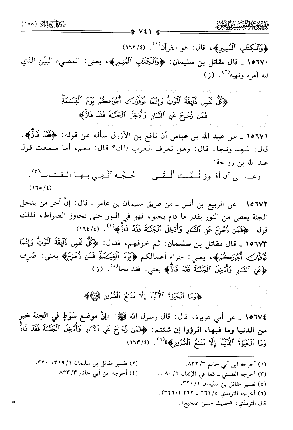 ١٥٦٧٣ - قال مقاتل بن سليمان: ثم خوفهم، فقال: {كل نفس ذائقة الموت وإنما توفون أجوركم}، يعني: جزاء أعمالكم {يوم القيامة فمن زحزح} يعني: صُرِف {عن النار وأدخل الجنة فقد فاز} يعني: فقد نجا (¬٥). (ز)