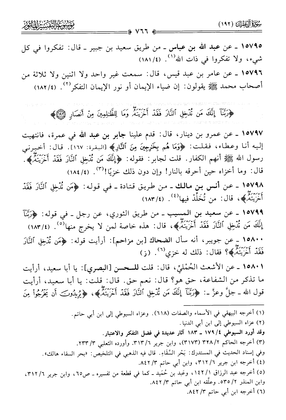 ١٥٧٩٩ - عن سعيد بن المسيب -من طريق الثوري، عن رجل- في قوله: {ربنا إنك من تدخل النار فقد أخزيته}، قال: هذه خاصة لمن لا يخرج منها (¬٥). (٤/ ١٨٣)