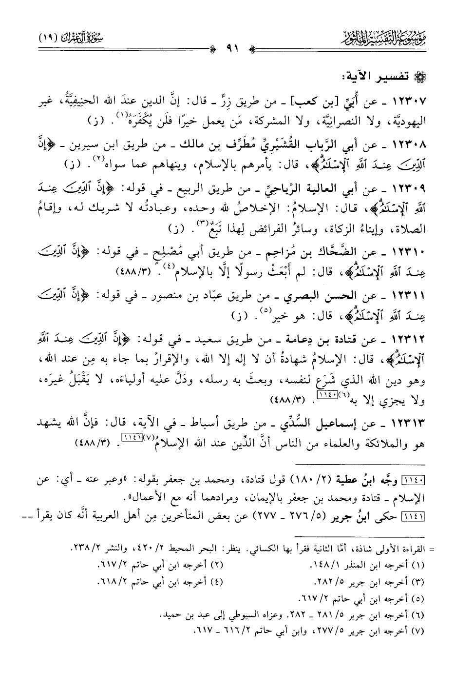 ١٢٣٠٨ - عن أبي الرَّباب القُشَيْرِيِّ مُطَرِّف بن مالك -من طريق ابن سيرين- {إن الدين عند الله الإسلام}، قال: يأمرهم بالإسلام، وينهاهم عما سواه (¬٢). (ز)