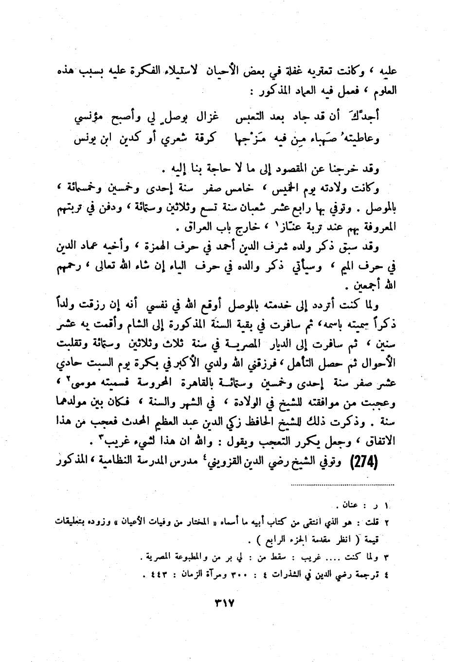(274) وتوفي الشيخ رضي الدين القزويني (4) مدرس المدرسة النظامية، المذكور