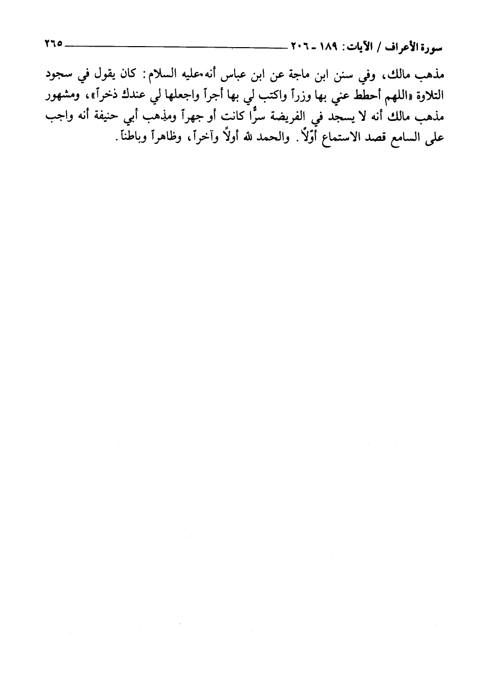 ، وَمَشْهُورُ مَذْهَبِ مَالِكٍ أَنَّهُ لَا يَسْجُدُ فِي الْفَرِيضَةِ سِرًّا كَانَتْ أَوْ جَهْرًا وَمَذْهَبُ أَبِي حَنِيفَةَ أَنَّهُ وَاجِبٌ عَلَى السامع قصد الاستماع أوّلا. وَالْحَمْدُ لِلَّهِ أَوَّلًا وَآخِرًا، وَظَاهِرًا وَبَاطِنًا.