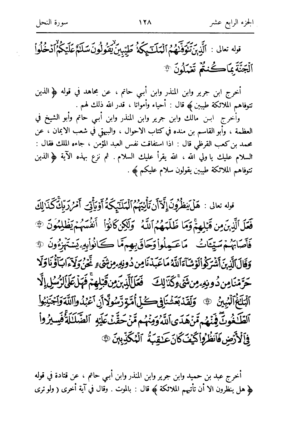 أخرج ابْن جرير وَابْن الْمُنْذر وَابْن أبي حَاتِم عَن مُجَاهِد فِي قَوْله: {الَّذين تتوفاهم الْمَلَائِكَة طيبين} قَالَ: أَحيَاء وأمواتاً قدر الله ذَلِك لَهُم