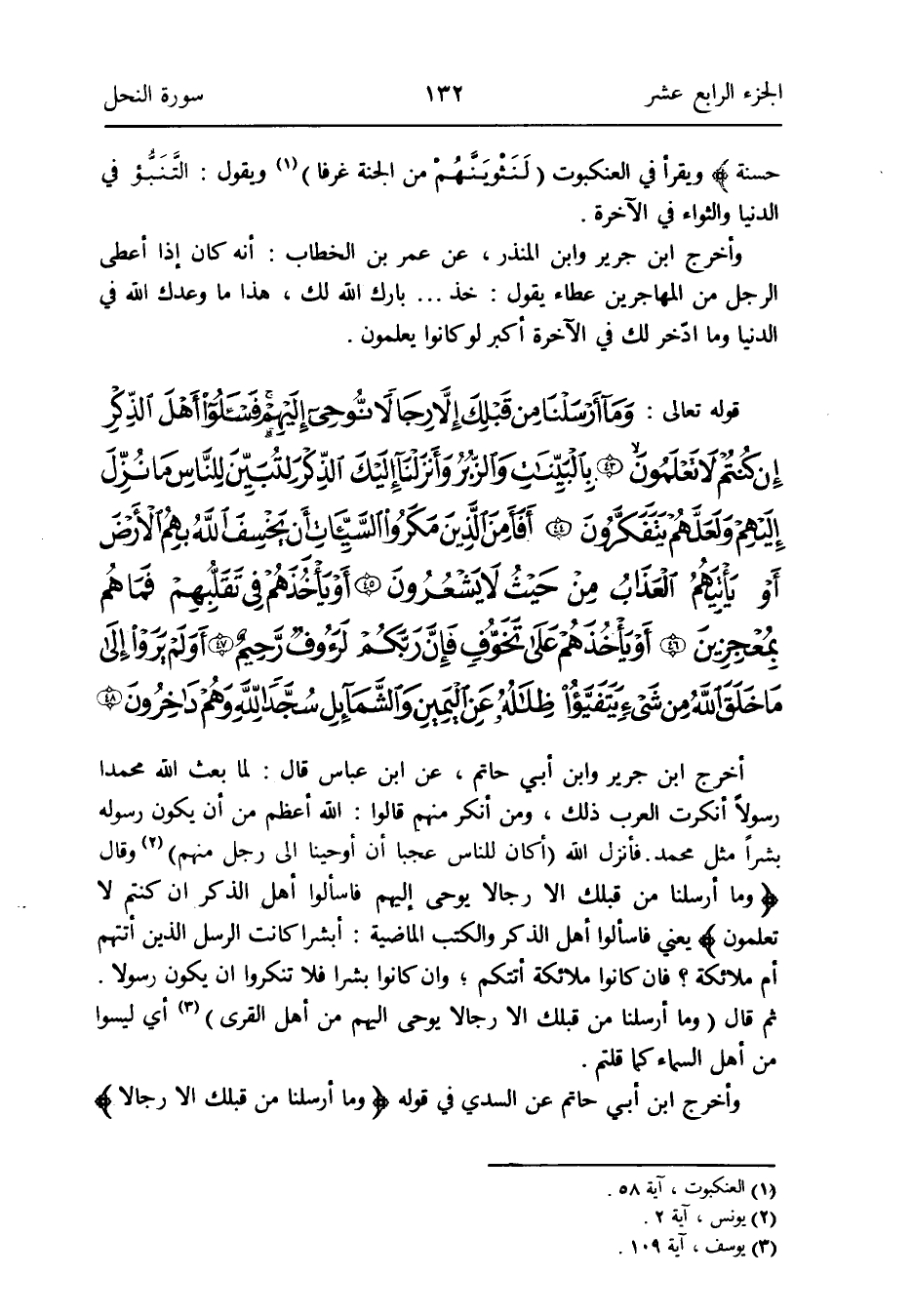 فَأنْزل الله: (أَكَانَ للنَّاس عجبا أَن أَوْحَينَا إِلَى رجل مِنْهُم) (يُونُس آيَة 2) وَقَالَ: {وَمَا أرسلنَا من قبلك إِلَّا رجَالًا نوحي إِلَيْهِم فاسألوا أهل الذّكر إِن كُنْتُم لَا تعلمُونَ} يَعْنِي فاسألوا أهل الذّكر والكتب الْمَاضِيَة: أبشر كَانَت الرُّسُل الَّذين أَتَتْهُم أم مَلَائِكَة فَإِن كَانُوا مَلَائِكَة أتتكم وَإِن كَانُوا بشرا فَلَا تنكروا أَن يكون رَسُولا