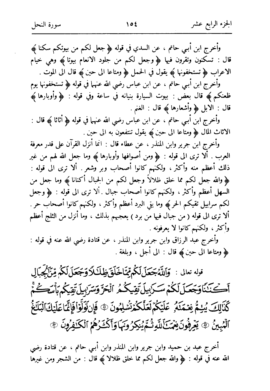 أخرج عبد بن حميد وَابْن جرير وَابْن الْمُنْذر وَابْن أبي حَاتِم عَن قَتَادَة رَضِي الله عَنهُ فِي قَوْله: {وَالله جعل لكم مِمَّا خلق ظلالاً} قَالَ: من الشّجر وَمن غَيرهَا
