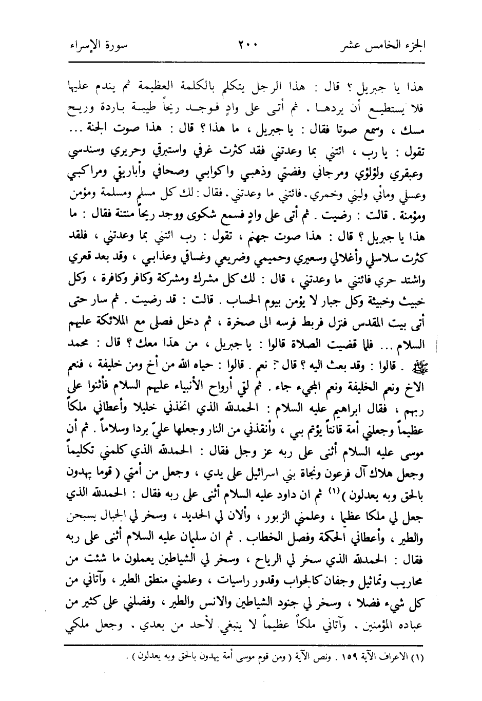 وَنَصّ الْآيَة (وَمن قوم مُوسَى أمة يهْدُونَ بِالْحَقِّ وَبِه يعدلُونَ)