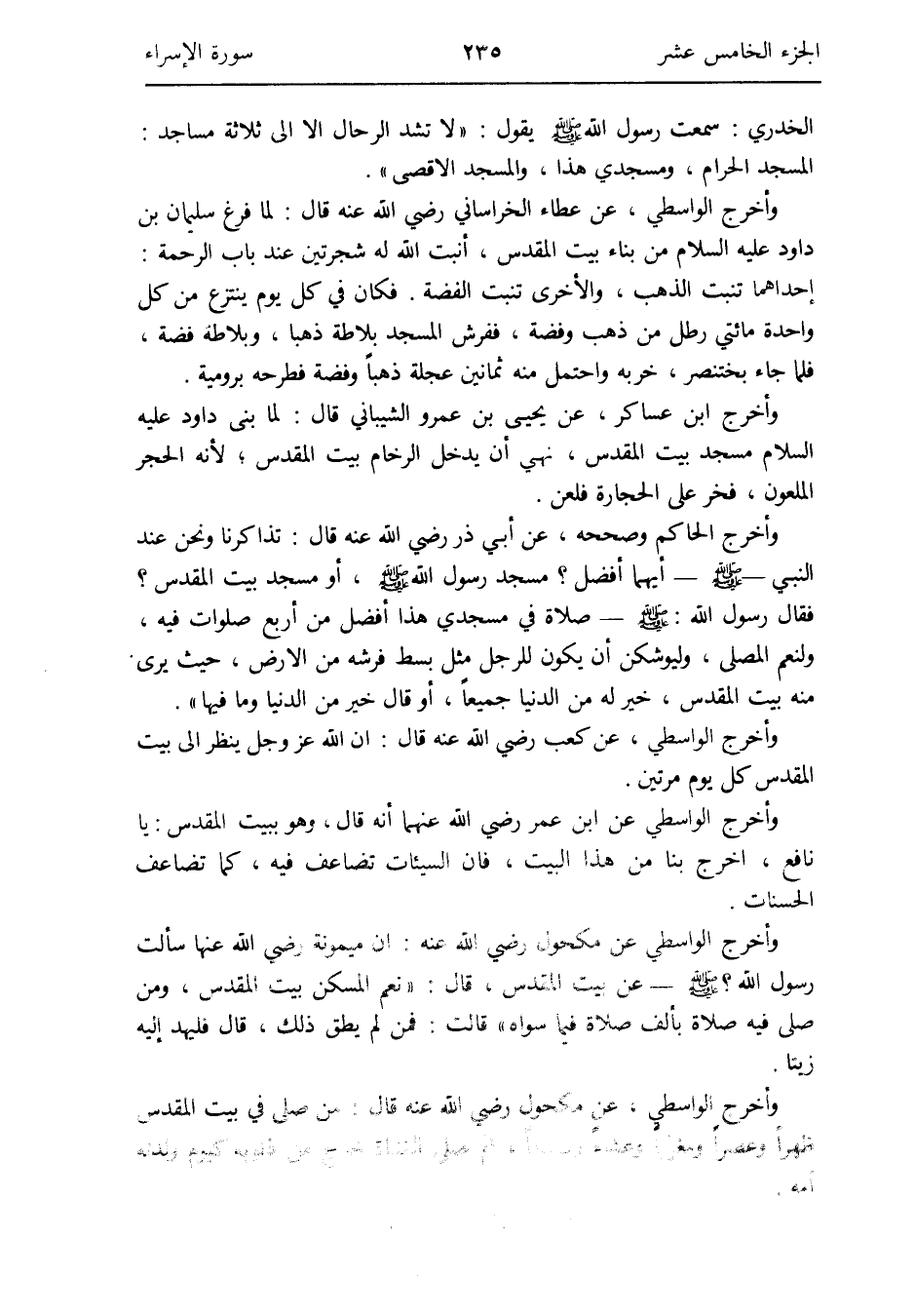 وَأخرج الوَاسِطِيّ عَن ابْن عمر رَضِي الله عَنْهُمَا أَنه قَالَ وَهُوَ بِبَيْت الْمُقَدّس: يَا نَافِع أخرج بِنَا من هَذَا الْبَيْت فَإِن السَّيِّئَات تضَاعف فِيهِ كَمَا تضَاعف الْحَسَنَات
