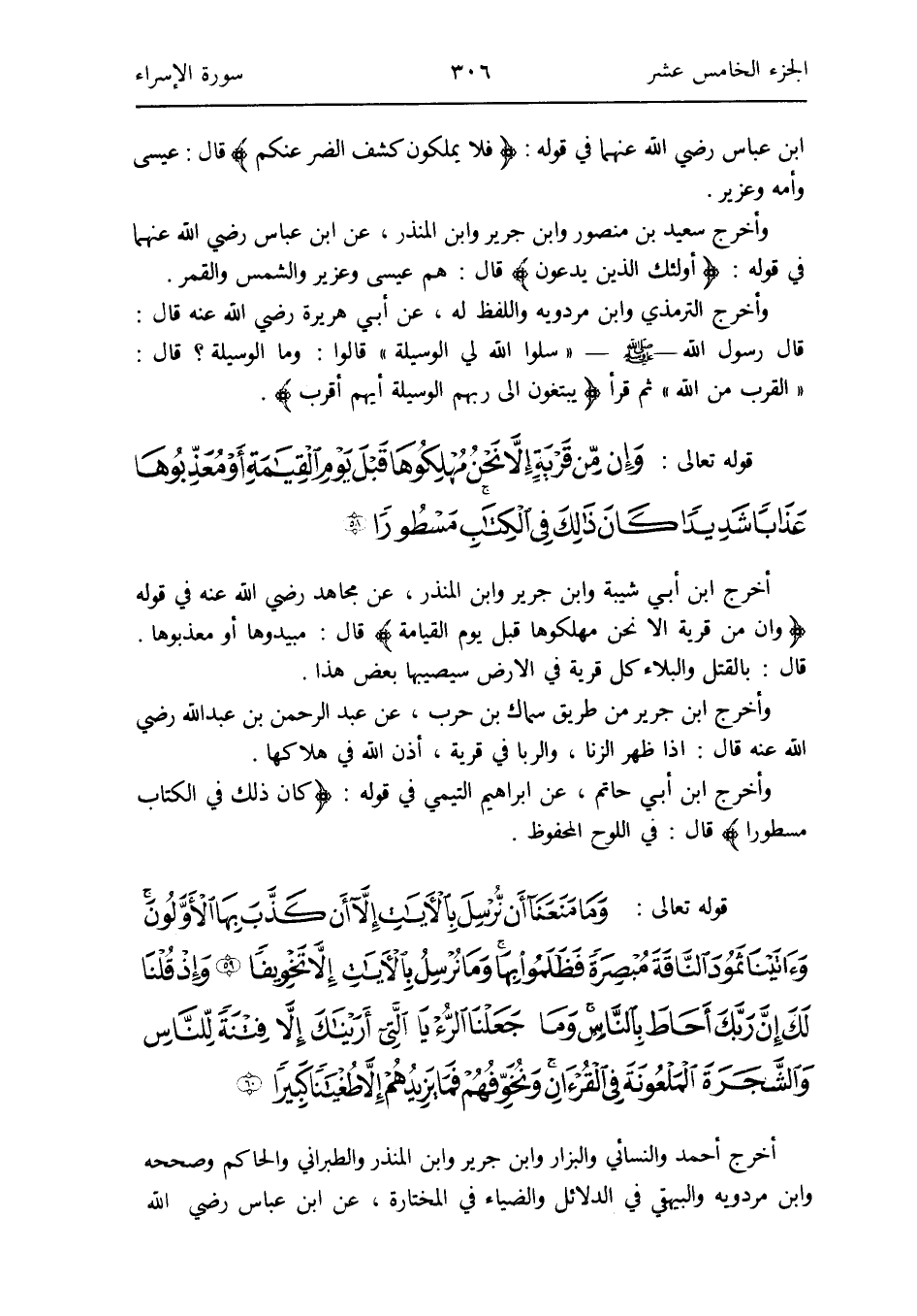 أخرج أَحْمد وَالنَّسَائِيّ وَالْبَزَّار وَابْن جرير وَابْن الْمُنْذر وَالطَّبَرَانِيّ وَالْحَاكِم وَصَححهُ وَابْن مرْدَوَيْه وَالْبَيْهَقِيّ فِي الدَّلَائِل والضياء فِي المختارة عَن ابْن عَبَّاس رَضِي الله