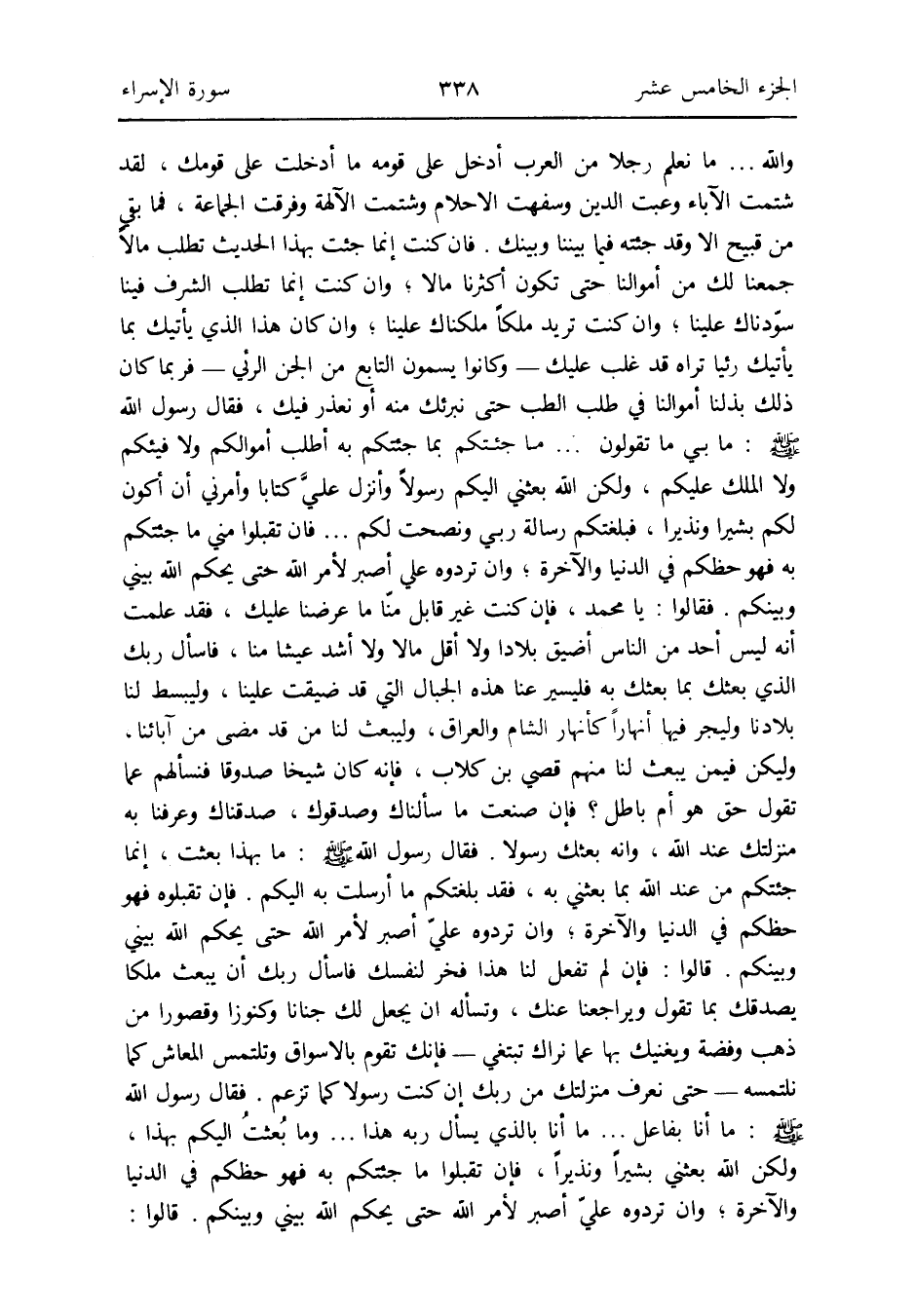 وَمَا بُعثتُ إِلَيْكُم بِهَذَا وَلَكِن الله بَعَثَنِي بشيراً وَنَذِيرا فَإِن تقبلُوا مَا جِئتُكُمْ بِهِ فَهُوَ حظكم فِي الدُّنْيَا وَالْآخِرَة وَإِن تردوه عَليّ أَصْبِر لأمر الله حَتَّى يحكم الله بيني وَبَيْنكُم