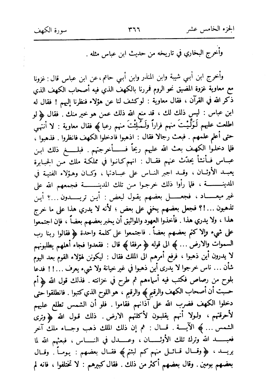 وَأخرج ابْن أبي شيبَة وَابْن الْمُنْذر وَابْن أبي حَاتِم عَن ابْن عَبَّاس قَالَ: غزونا مَعَ مُعَاوِيَة غَزْوَة الْمضيق نَحْو الرّوم فمررنا بالكهف الَّذِي فِيهِ أَصْحَاب الْكَهْف الَّذِي ذكر الله فِي الْقُرْآن