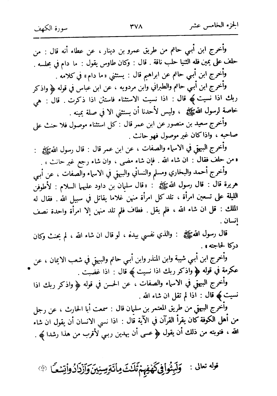 وَأخرج ابْن أبي حَاتِم عَن إِبْرَاهِيم قَالَ: يَسْتَثْنِي مادام فِي كَلَامه