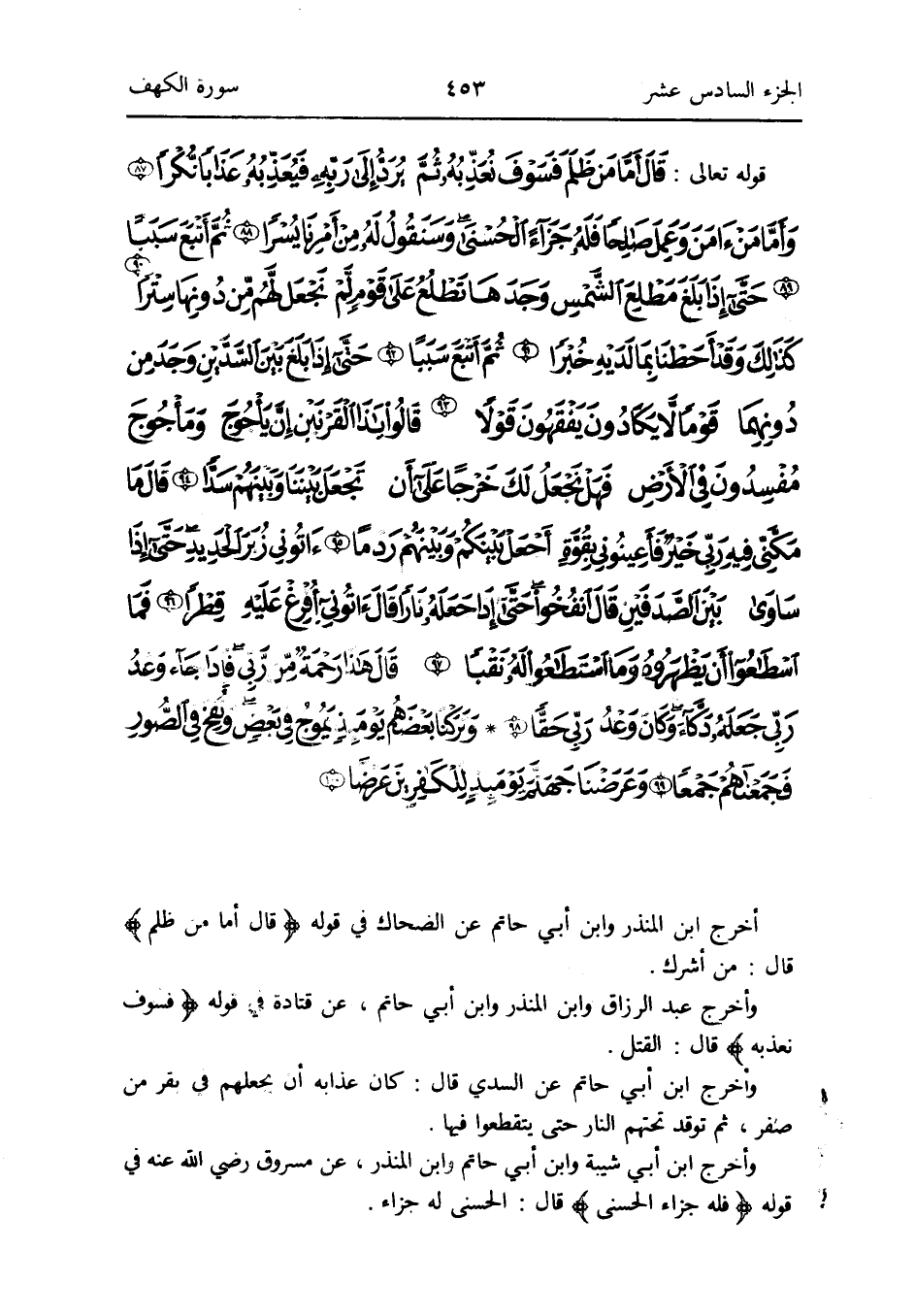 أخرج ابْن الْمُنْذر وَابْن أبي حَاتِم فِي قَوْله: {قَالَ أما من ظلم} قَالَ: من أشرك