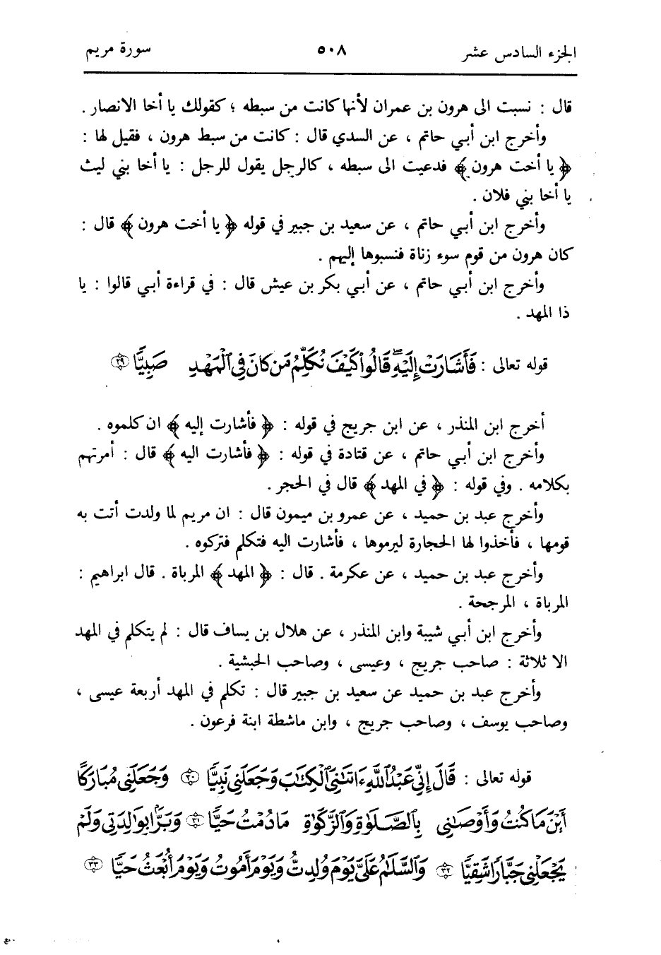 وَأخرج ابْن أبي حَاتِم عَن سعيد بن جُبَير فِي قَوْله: {يَا أُخْت هَارُون} قَالَ: كَانَ هرون من قوم سوء زناة فنسبوها إِلَيْهِم