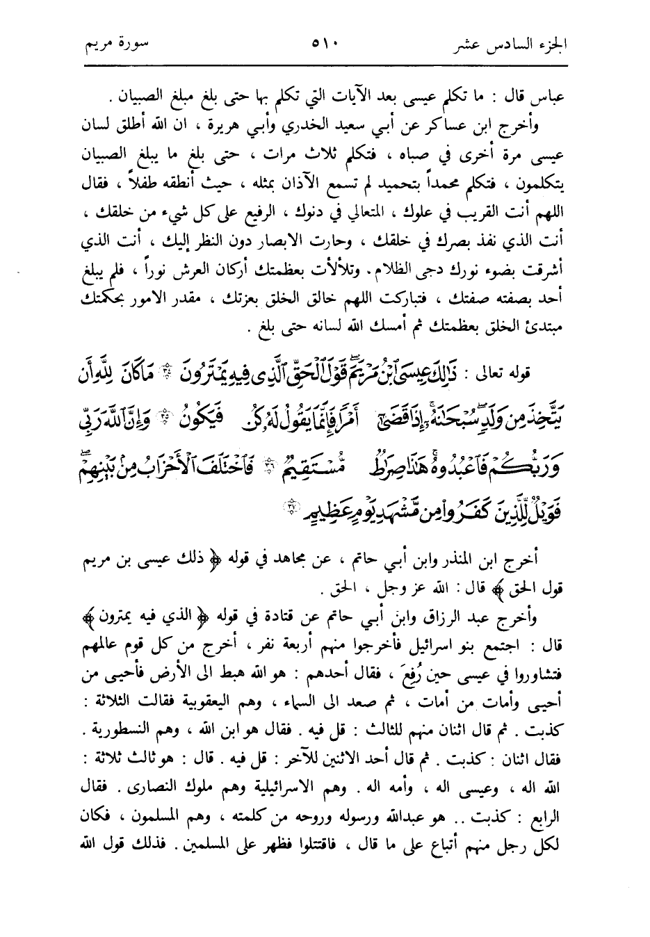 أخرج ابْن الْمُنْذر وَابْن أبي حَاتِم عَن مُجَاهِد فِي قَوْله: {ذَلِك عِيسَى ابْن مَرْيَم قَول الْحق} قَالَ: الله عز وَجل الْحق