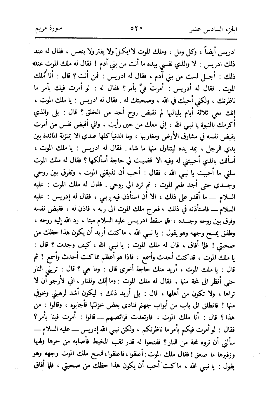 فَقَالَ لَهُ عِنْد ذَلِك إِدْرِيس: لَا وَالَّذِي نَفسِي بِيَدِهِ مَا أَنْت من بني آدم فَقَالَ لَهُ ملك الْمَوْت عِنْده ذَلِك: أجل لست من بني آدم