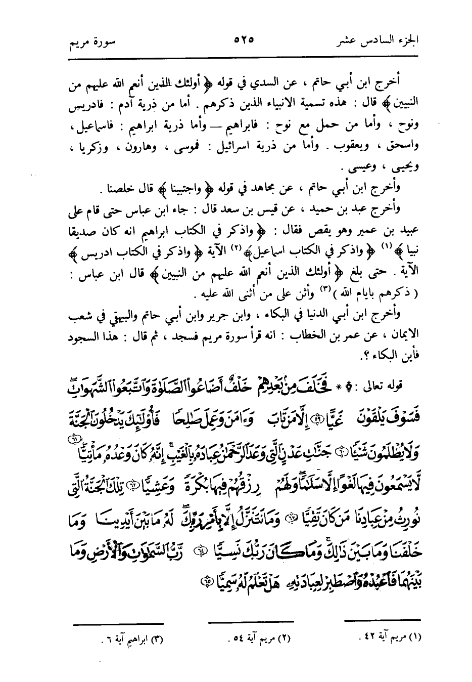 حَتَّى بلغ {أُولَئِكَ الَّذين أنعم الله عَلَيْهِم من النَّبِيين} قَالَ ابْن عَبَّاس: (ذكرهم بأيام الله) (إِبْرَاهِيم آيَة 6) وأثن على من أثنى الله عَلَيْهِ