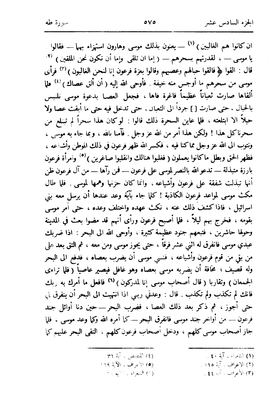 قَالَ: وَعَدَني رَبِّي إِذا انْتَهَيْت إِلَى الْبَحْر أَن ينفرق لي حَتَّى أجوز ثمَّ ذكر بعد ذَلِك الْعَصَا فَضرب الْبَحْر - حِين دنا أَوَائِل جند فِرْعَوْن - من أَوَاخِر جند مُوسَى فانفرق الْبَحْر - كَمَا أمره الله وكما وعد مُوسَى فَلَمَّا جَازَ أَصْحَاب مُوسَى كلهم وَدخل أَصْحَاب فِرْعَوْن كلهم التقى الْبَحْر عَلَيْهِم كَمَا