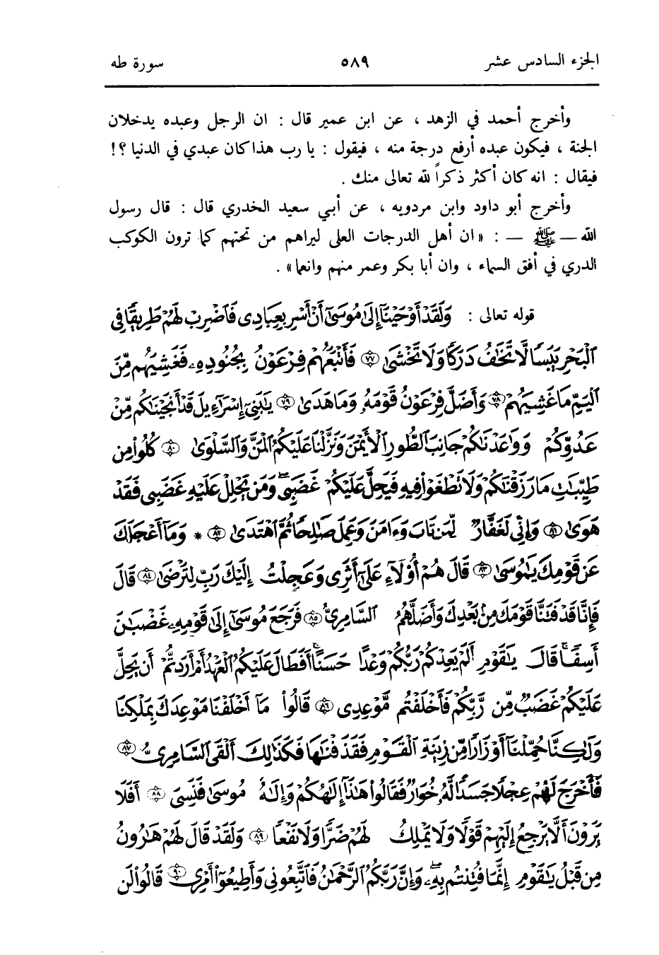 وَأخرج أَبُو دَاوُد وَابْن مرْدَوَيْه عَن أبي سعيد الْخُدْرِيّ قَالَ: قَالَ رَسُول الله صلى الله عَلَيْهِ وَسلم: إِن أهل الدَّرَجَات العلى ليراهم من تَحْتهم كَمَا ترَوْنَ الْكَوْكَب الذري فِي أفق السَّمَاء وَأَن أَبَا بكر وَعمر مِنْهُم وانعما
